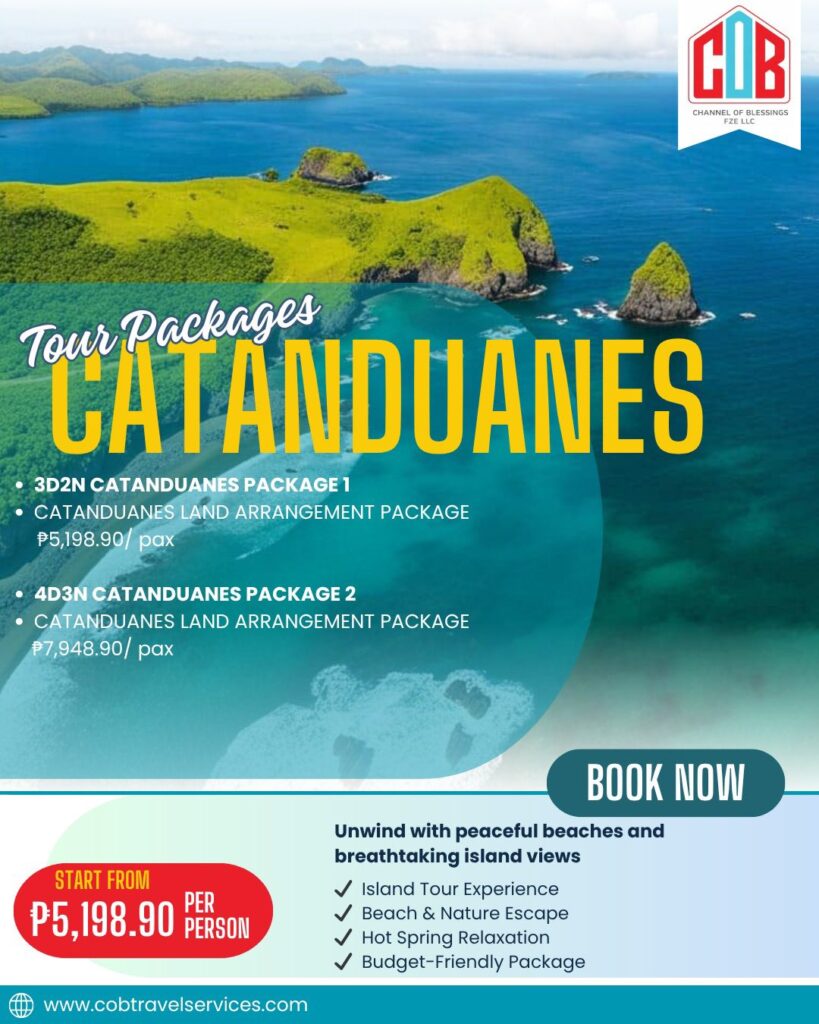 Explore Catanduanes with affordable island tour packages. Enjoy beaches, nature escapes, and relaxing hot springs starting from ₱5,198 per person. Book now!